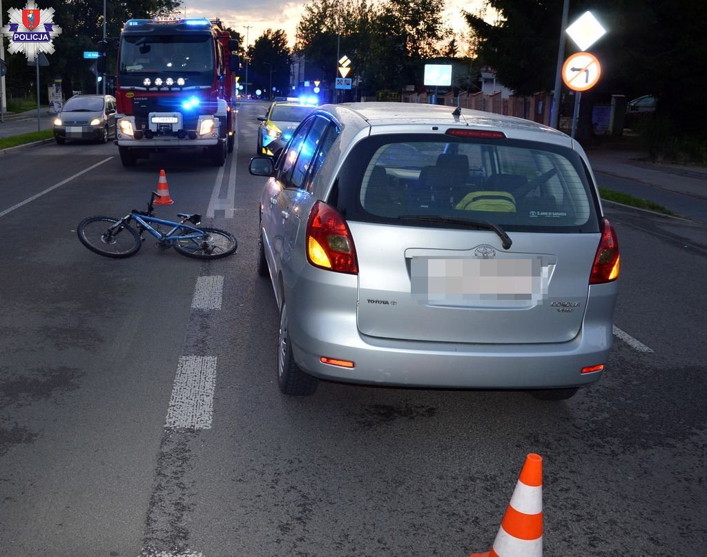 Pierwsze z nich miało miejsce w Zamościu na ulicy Partyzantów około godziny 17:30. Ze wstępnych ustaleń policjantów wynika, że kierujący rowerem jechał ulicą Zacisze od ulicy Wyszyńskiego. Przejeżdżając przez ulicę Partyzantów wjechał na jezdnię bezpośrednio przed pojazd marki Toyota. Kierujący autem nie zdążył zareagować, rowerzysta uderzył w karoserię Toyoty i upadł na jezdnię.