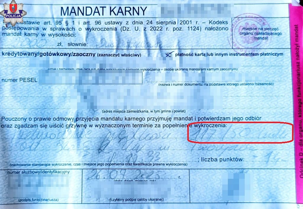 W miejscu oznaczonym jako obszar zabudowany, zauważyli kierującego pojazdem marki Ford, który jechał znacznie szybciej niż zezwalają na to przepisy. Konsekwencją przekroczenia prędkości przez 50-latka z powiatu konińskiego o 67 km/h był mandat w wysokości 2000 złotych oraz 14 punktów karnych. Mężczyzna na trzy miesiące stracił też uprawnienia do kierowania.