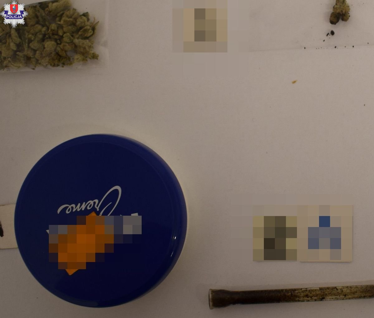 Nieco mniejszą ilością narkotyków została znaleziona przy parze 16-latków z Zamościa. Zamojski policjanci zauważyli ich na terenach zielonych obrzeży miasta, siedzących przy stoliku w ruinach budynku dawnej pieczarkarni. Początkowo oboje nieletni nie chcieli ujawnić co zawiera znalezione przy ich siedzeniach opakowanie po kremie. Kiedy mundurowi je otworzyli, 16-latek przyznał się, że znajdująca się tam marihuana i szklana lufka są jego własnością. Oboje trafili do zamojskiej komendy skąd zabrali ich rodzice.