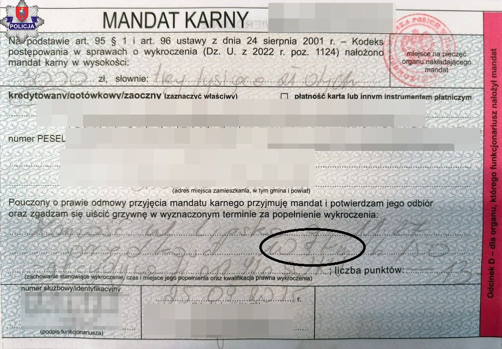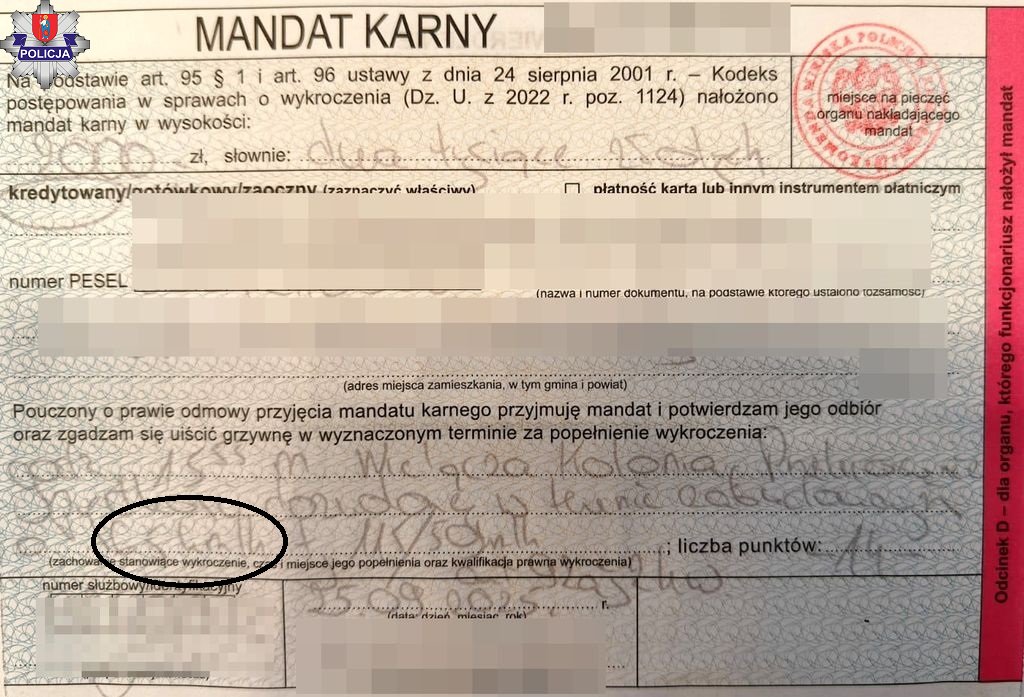 Pojazdem kierował 32-latek. Po sprawdzeniu w systemach policjanci już wiedzieli, że kwota mandatu będzie dwa razy większa, bo mężczyzna popełnił wykroczenie w warunkach recydywy. Oprócz utraty prawa jazdy na trzy miesiące za zbyt dużą prędkość w obszarze zabudowanym, kierujący zapłacił 3000 złotych mandatu, a na jego konto wpłynęło 13 punktów karnych.