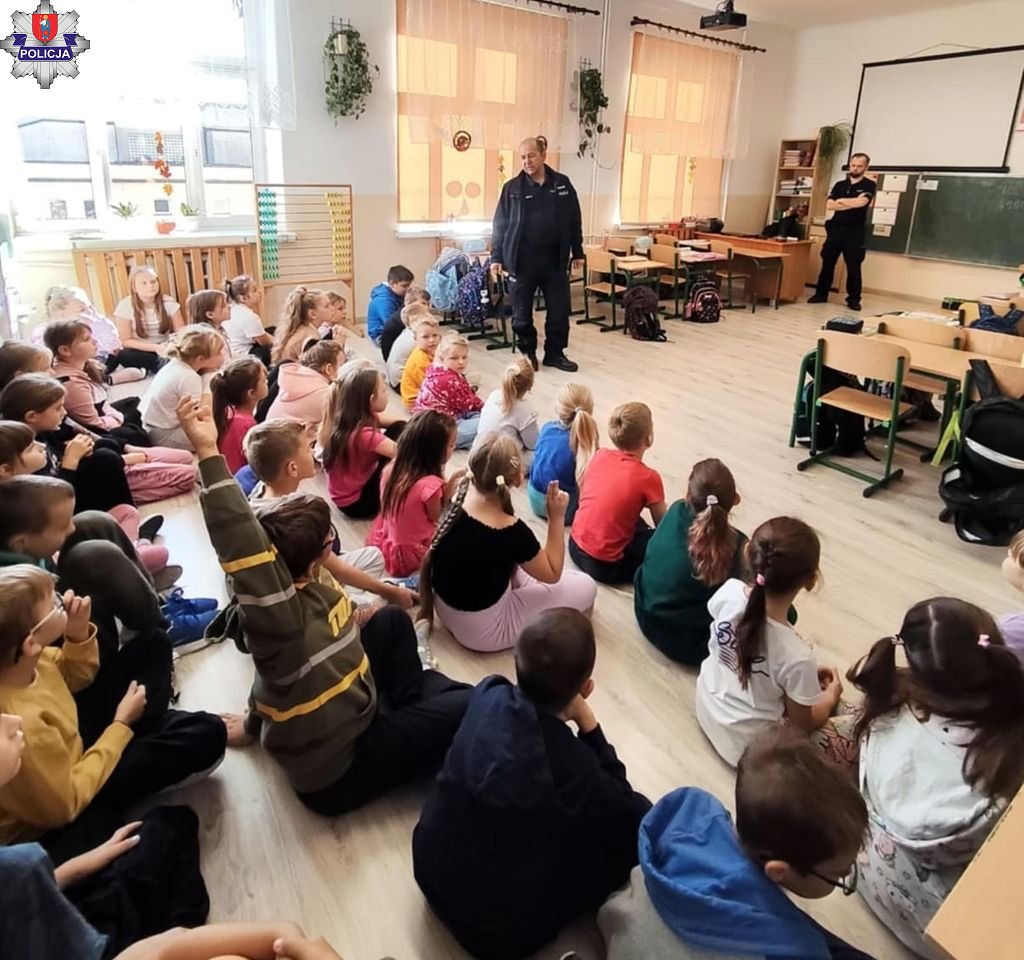 Policjanci z Posterunku Policji w Krasnobrodzie spotkali się z uczniami, aby porozmawiać o bezpieczeństwie. Mówili o zagrożeniach, jakie młode osoby mogą spotkać w świecie realnym i wirtualnym. Radzili jak ich unikać. Apelowali do młodych uczestników ruchu o dbanie o bezpieczeństwo drogowe i noszenie odblasków.