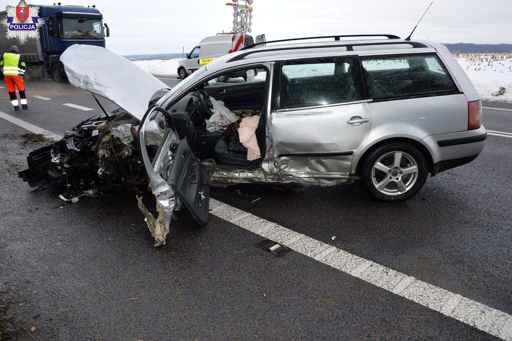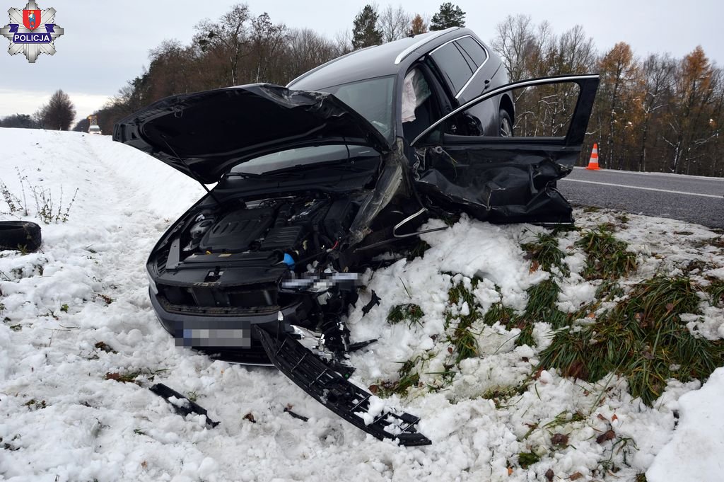 W m. Krasne w gm. Stary Zamość kierujący volkswagenem wjechał na przeciwny pas ruchu uderzając w jadącego w przeciwną stronę kierującego, również volkswagenem. Obaj mężczyźni w wieku 57 i 61 lat zostali przewiezieni do szpitala. Podróżowali sami, byli trzeźwi. Ustalamy przyczynę wypadku i apelujemy o zachowanie ostrożności na drodze.