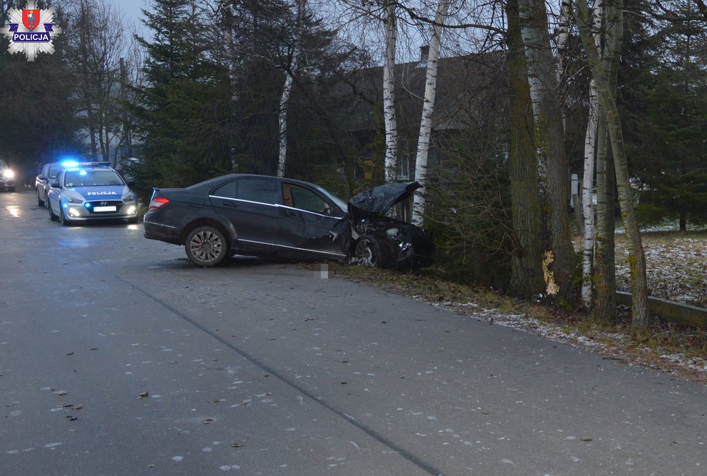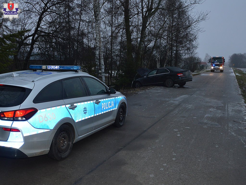Wypadek miał miejsce w sobotnią noc około godziny 2:30 na drodze gminnej w miejscowości Dąbrowa w gminie Łabunie. Z naszych wstępnych ustaleń wynika, że kierujący mercedesem jechał w kierunku miejscowości Bródek. Prawdopodobnie nie dostosował prędkości do trudnych warunków drogowych, wpadł w poślizg, zjechał na pobocze i uderzył w drzewo.