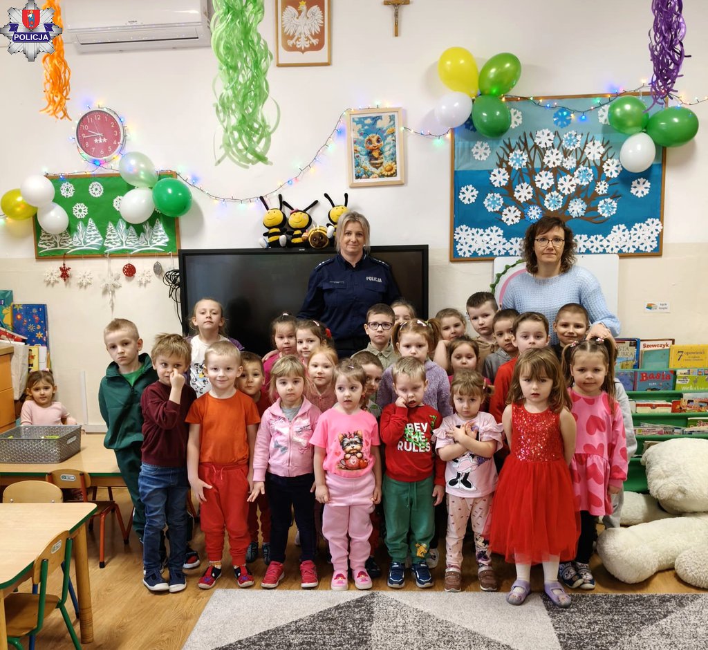 Tematem rozmów policjantów z uczniami było również bezpieczeństwo na drodze. Funkcjonariusze przypomnieli najmłodszym po której stronie drogi można się poruszać w przypadku, gdy nie na chodnika, jak bezpiecznie przechodzić przez jezdnię oraz jak bezpiecznie podróżować samochodem. Przypomnieli też o noszeniu odblasków, omawiając ich wpływ na bezpieczeństwo. Uczniowie z Krasnobrodu od policjantki otrzymali też odblaskowe gadżety.