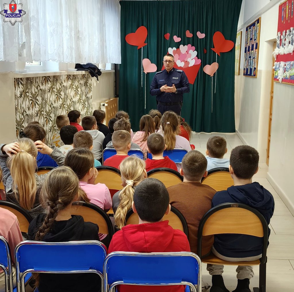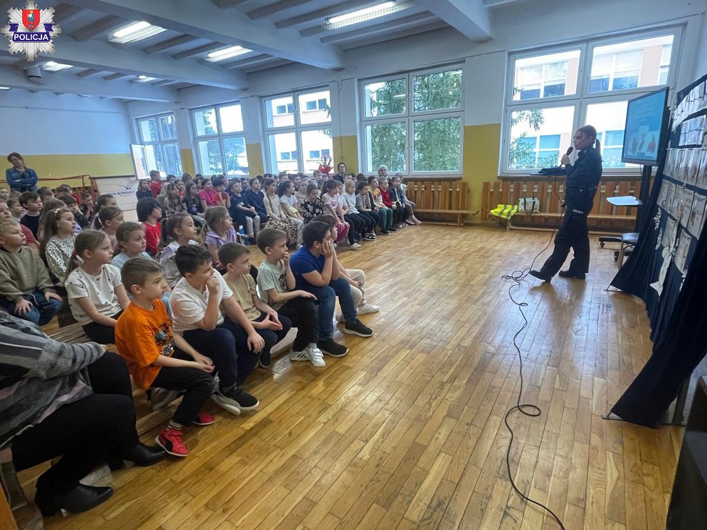 Zamojscy profilaktycy – aspirant sztabowy Dariusz Kuropatnicki oraz aspirant Katarzyna Litwin, odwiedzili Szkołę Podstawową z oddziałem przedszkolnym w Lipsku.