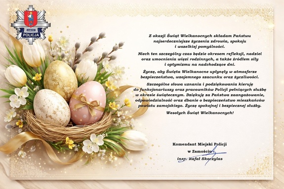 Życzenia Komendanta Miejskiego Policji w Zamościu z okazji Świąt Wielkanocnych